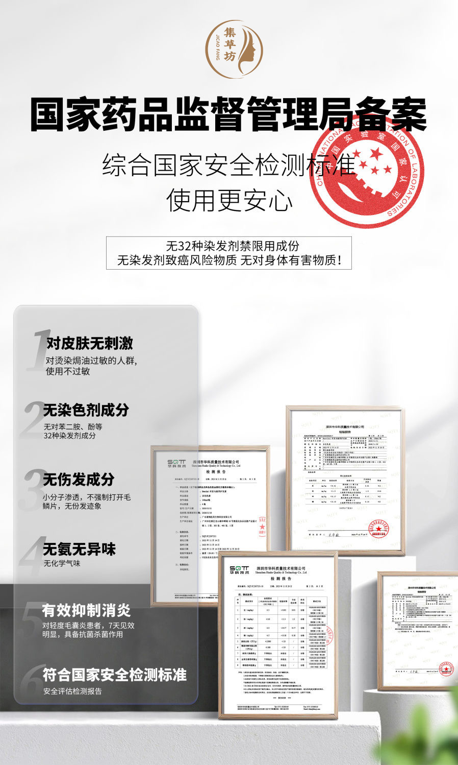 13、你們集草坊草本養(yǎng)發(fā)乳安全嗎?有檢測報告嗎?