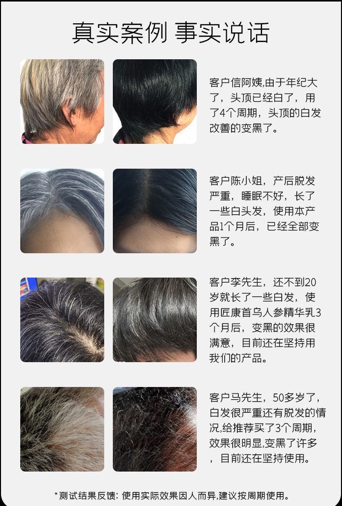 答:我們的產(chǎn)品真的能黑頭發(fā),大量白發(fā)患者親測有效,可以完全的放心